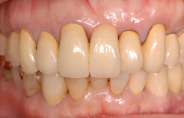 長い時間の経過とともに、左側前歯の歯肉は磨き過ぎによりやや歯根の露出が目立つようになってきました。