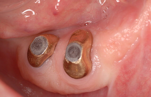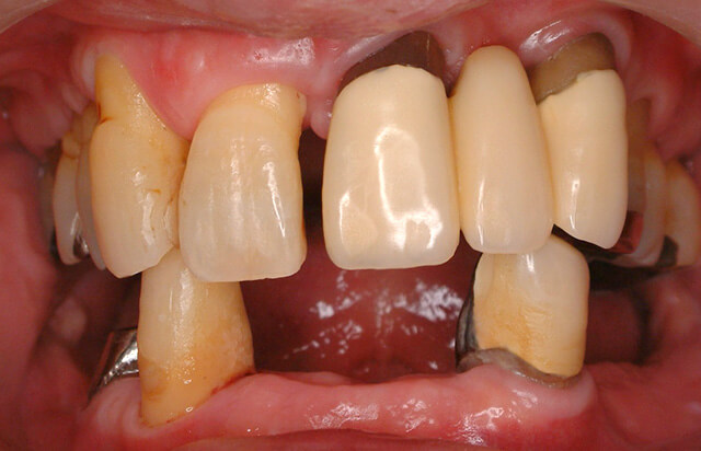歯周病の進行に伴い、歯槽骨が吸収して全ての歯が動揺していました。